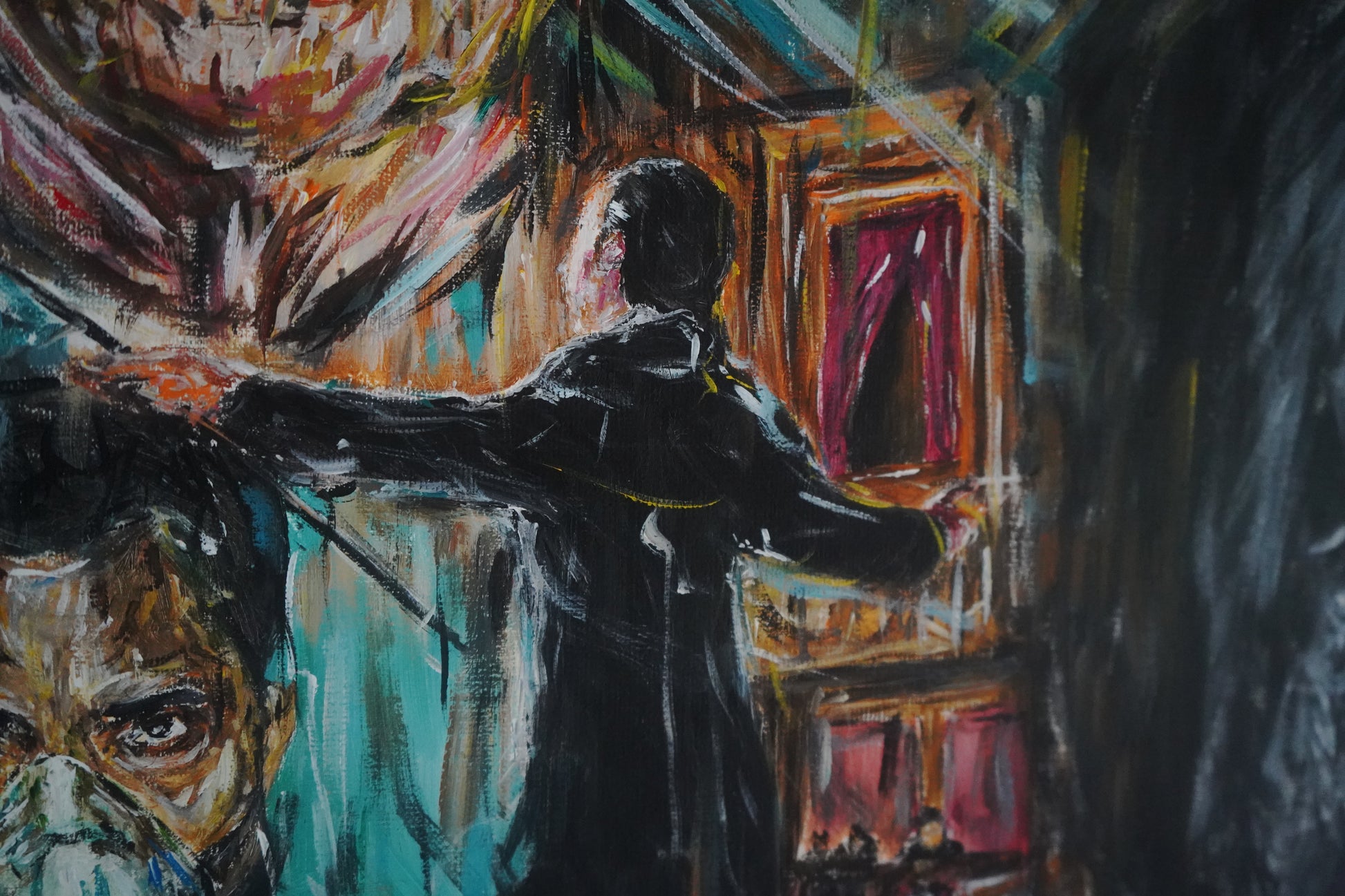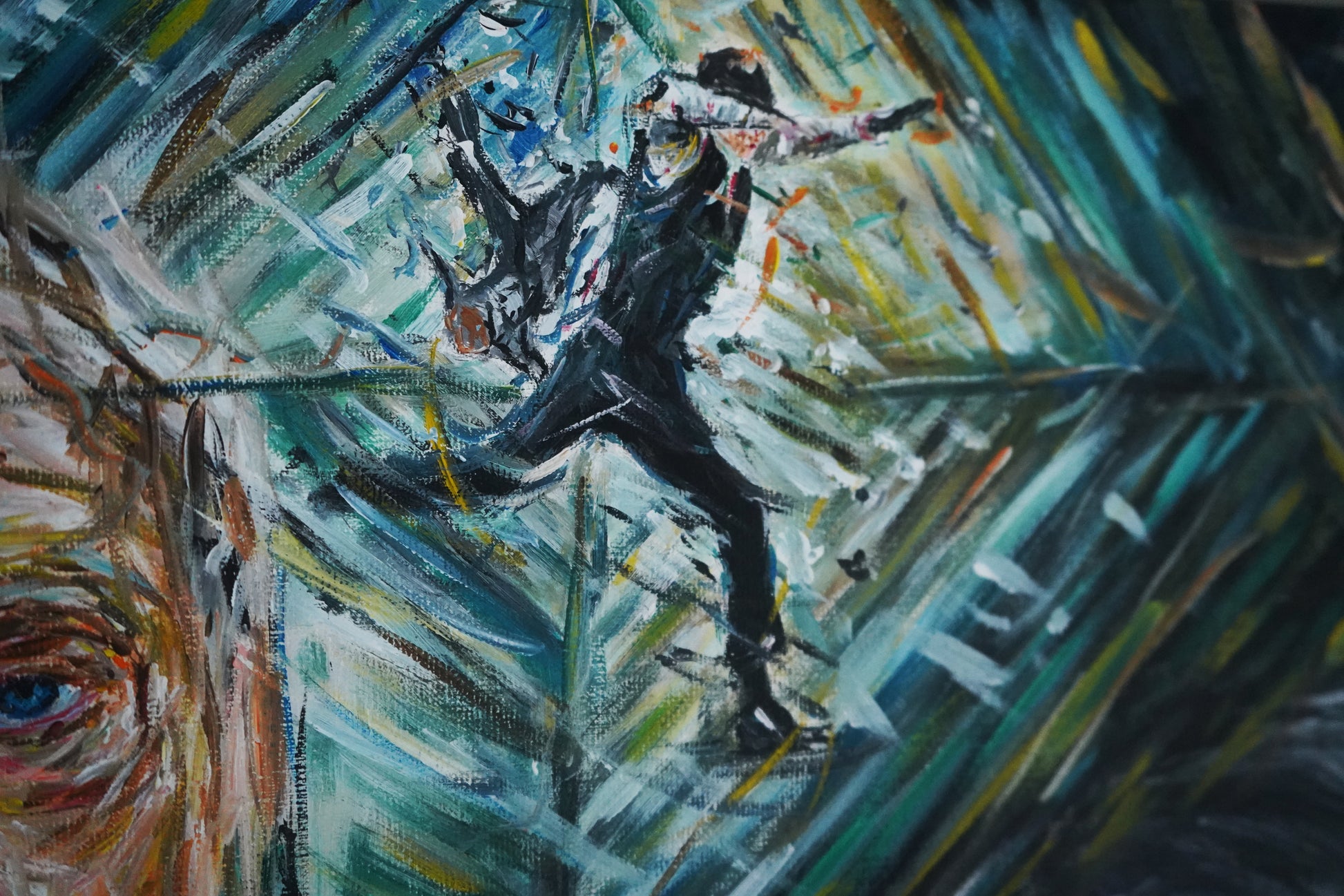 Original acrylic painting based on the iconic British director's Christopher Nolan's life work. The painting features artwork from all eleven of his movies.